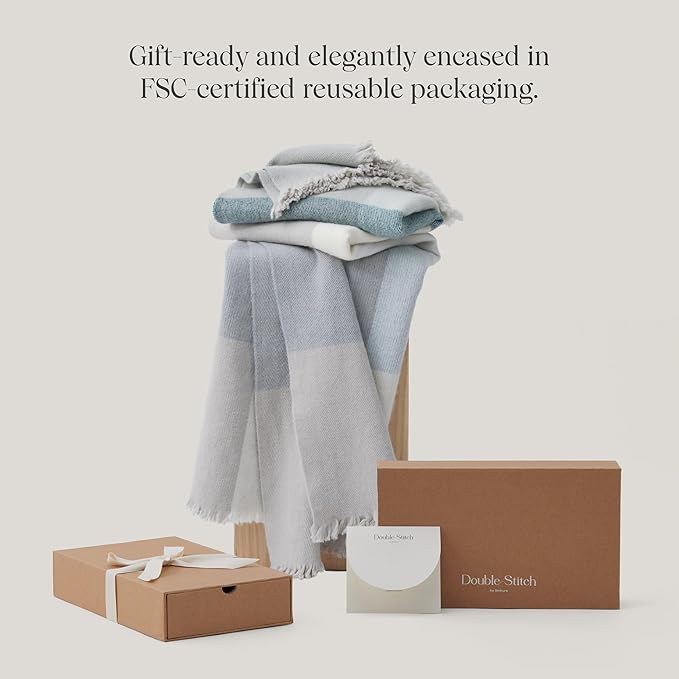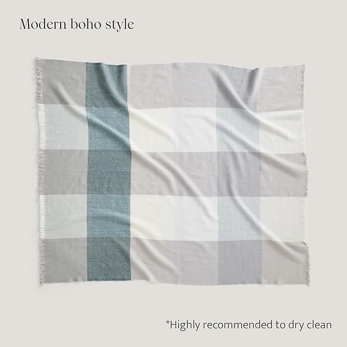 Double Stitch Alpaca Wool Throw Blanket - Warm, Soft Blanket for Couch, Luxury & Decorative Fleece Throw, Fall Plaid, Gift for Mother's Day, House Warming, 50" x 60", Sage Valley