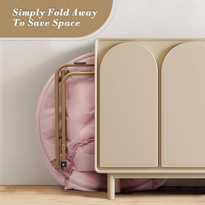 Athena Collection Saucer Chair with Ottoman Comfy Chair for Bed Room Living Room Folding Round Cozy Chair Faux Fur Metal Frame Foldable Lazy Chair Accent Chair Reading Chair Set of 2, Pink
