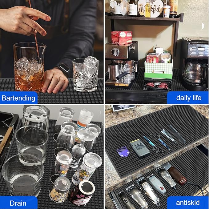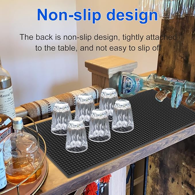 - 【Non-Slip & Protective】 With an anti-slip design, these rubber bar mats for bartending ensure that your drinking and serving utensils stay in place, eliminating the risk of spills. Not only do they keep the countertops clean, but they also protect the surfaces from possible damages.