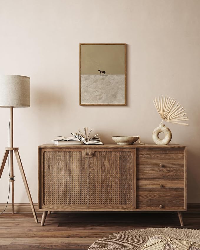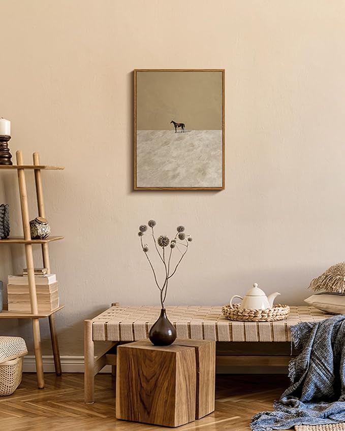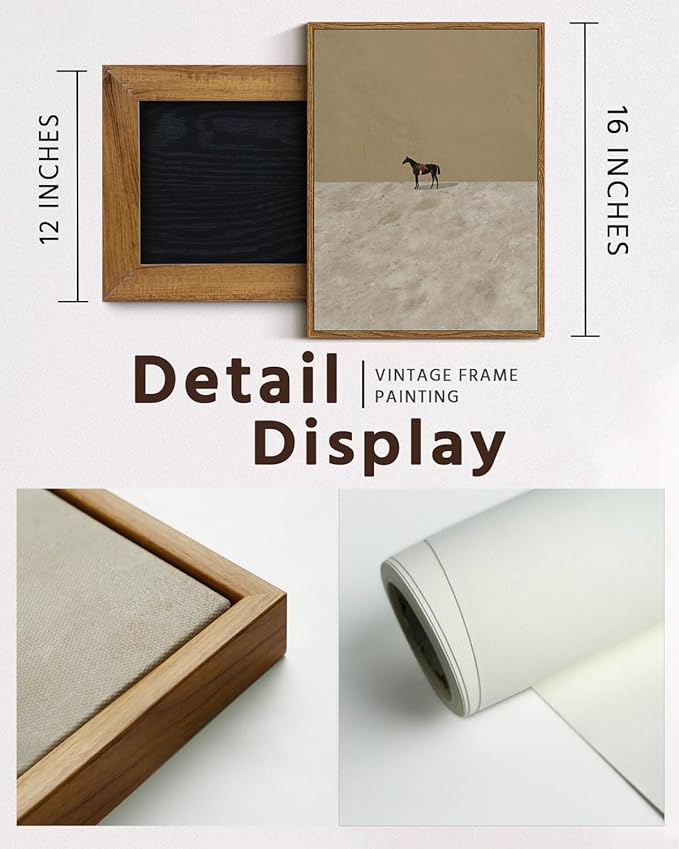 VIYYIEA Vintage Framed Horse Wall Art Decor, Living Room Bedroom Lonely Horse Pictures Retro Wall Decor, Framed Canvas Prints Artwork, Abstract Moody Paintings,12x16 Inch