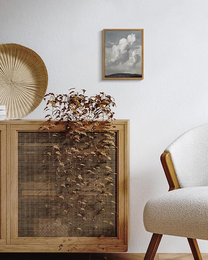 VIYYIEA Vintage Framed Cloud Wall Art Decor, Living Room Bedroom Cloudy Pictures Collage Wall Decor, Framed Canvas Prints Artwork, Retro Abstract Paintings,8x10 Inch