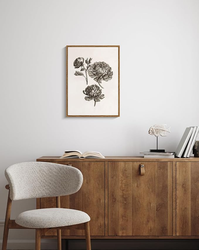 VIYYIEA Vintage Cottagecore Decor Framed Wall Art, Botanical Sketch Wall Art Bedroom Decor, Canvas Print Peony Pictures, Living Room Bedroom Country Decorations, 12x16 inch