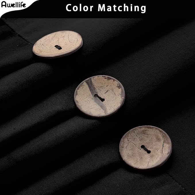 Awellife Farmhouse Black Shower Curtain Button Linen Textured Woven Fabric,Country Style 72" W x 72" L