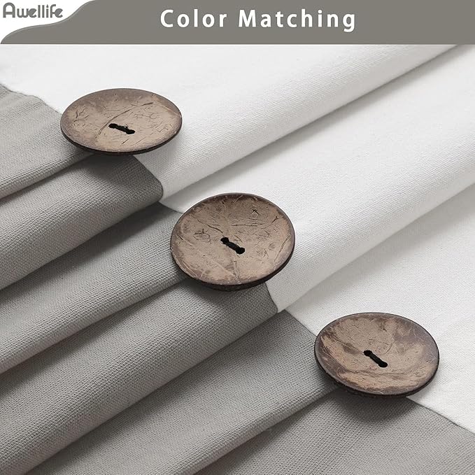 Awellife Farmhouse White Shower Curtain Button Linen Textured Woven Fabric,Country Style (White & Grey, 72" W x 72" L)