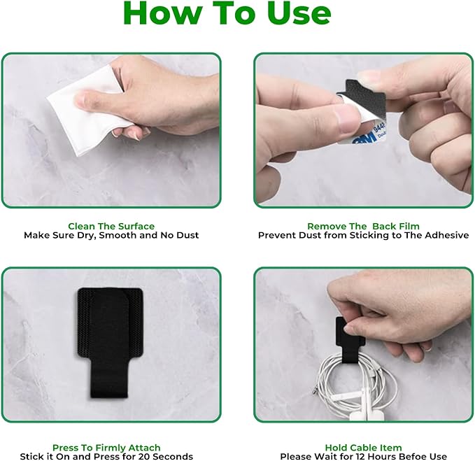 - 【Reusable & Eco-Friendly】: Premium hook and loop material allows repeated use without leaving residue.