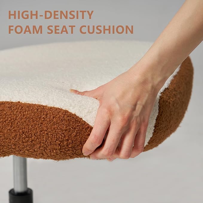Swivel Criss Cross Chair, Accent Chair with Ottoman Set, Modern Armless Chair with Ergonomic Backrest, Comfy Chair with Boucle Upholstered Seat, No Wheels, White & Brown