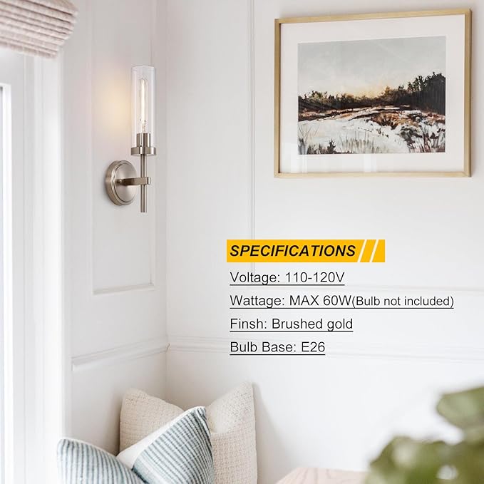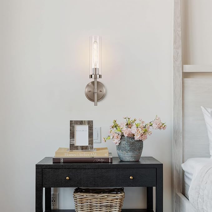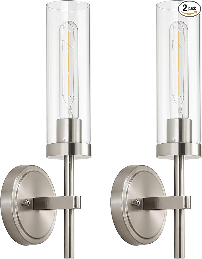 - ⭐【Superior Quality】These brushed nickel sconces wall decor set of 2 are made of high-quality steel and aluminum, not easy to rust and fade, and have strong corrosion resistance. perfect for wet spaces. The thick clear glass shade is used, which is not easy to break and has strong light transmittance, illuminating various spaces in your house.