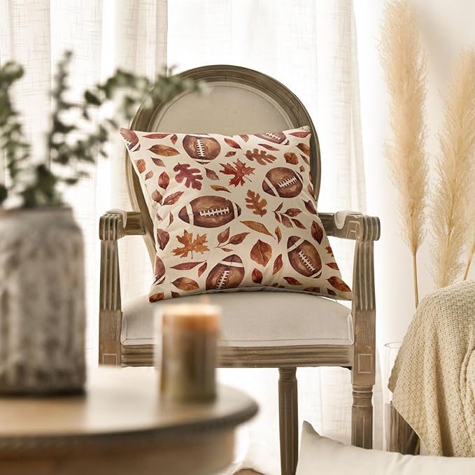 AVOIN colorlife Fall Football Maple Leaves Throw Pillow Cover 18x18 Inch, Seasonal Autumn Thanksgiving Harvest Cushion Case Decoration for Sofa Couch