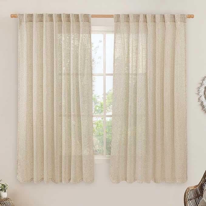 LAMIT Linen Curtains 63 Inch for Bedroom, Light Filtering Neutral Semi Sheer Window Curtains Back Tab and Rod Pocket Living Room Panels, 2 Panels, Linen, 60 x 63 Inch