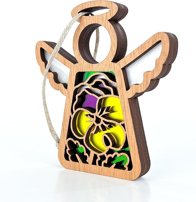 Pansies Gifts for Women - Pansy Christmas Ornament - Yellow Purple Flower Suncatcher - Memorial Angel Figurine - 3.5" (H)