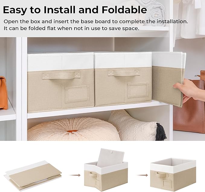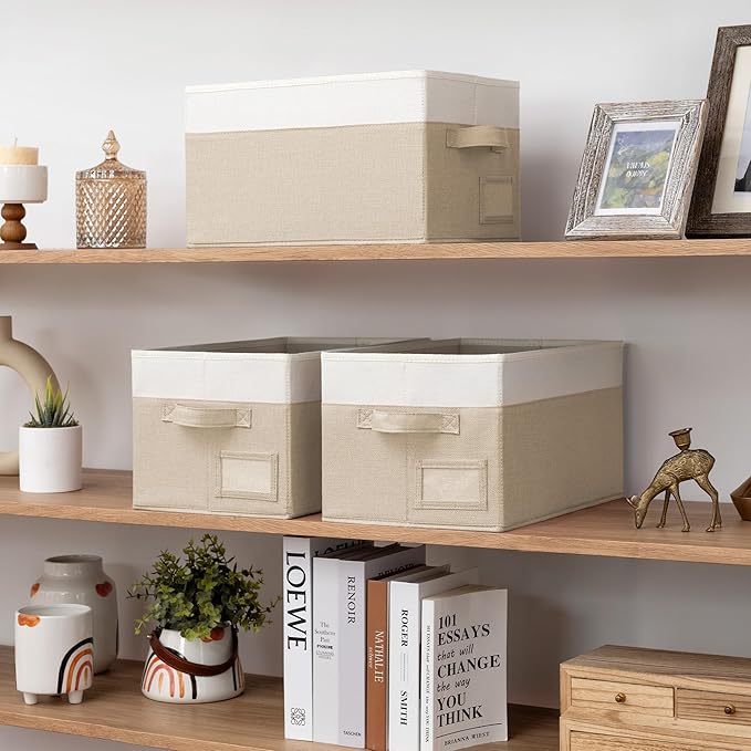 GRANNY SAYS Storage Baskets for Organizing, Fabric Storage Bins for Shelves, Closet Storage Boxs, Clothing Storage and Organization, Decorative Storage Bins, Khaki&Ivory, Large, 3-Pack