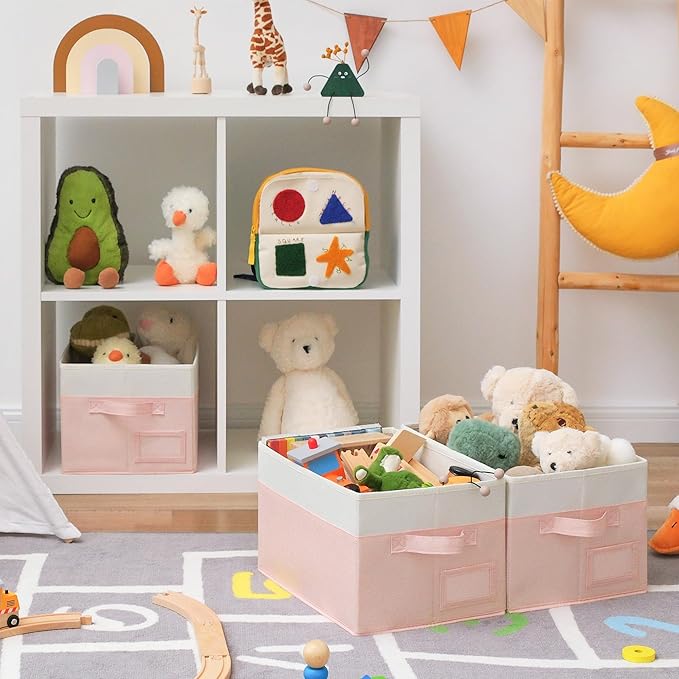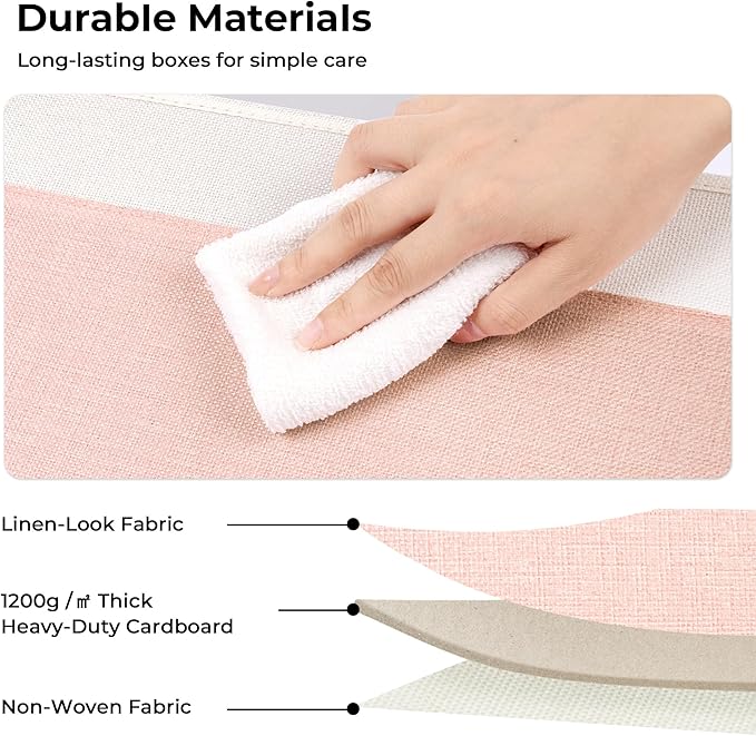 GRANNY SAYS Storage Baskets for Organizing, Fabric Storage Bins for Shelves, Closet Storage Boxs, Clothing Storage and Organization, Decorative Storage Bins, Pink&Ivory, Large, 3-Pack