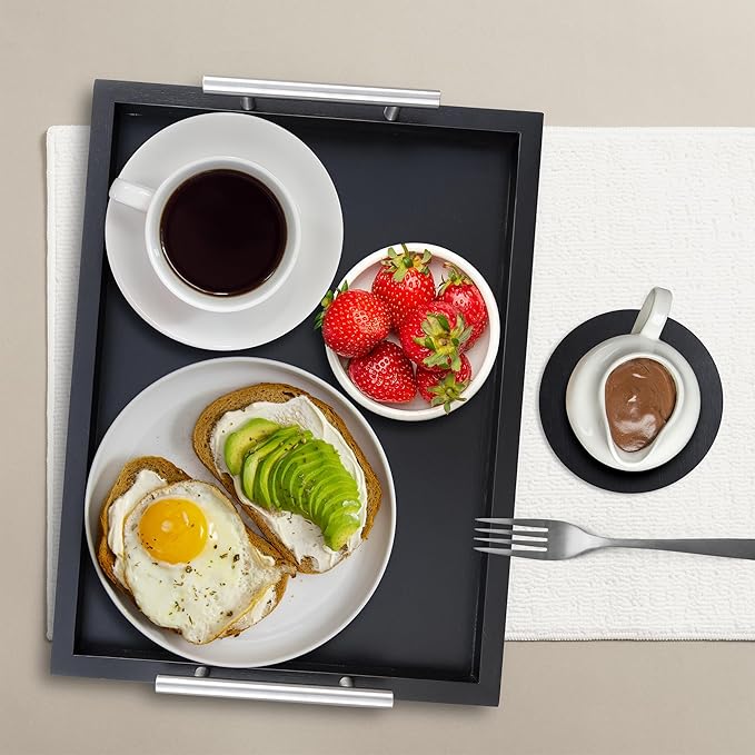- ✔ REAL WOOD AND METAL HANDLES: Our trays are crafted in house with genuine high-quality pine wood for a sustainable and high-performance design that will last forever. With sturdy real metal handles, you can expect a reliable and safe transfer of food and decor with a sleek matte style.