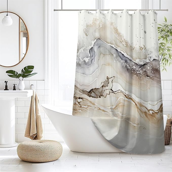 Renaiss Tan Marble Shower Curtain Modern Beige Waterproof Fabric Minimalist Shower Curtains Set Hooks Absract Taupe Ombre Aesthetic Luxury Hotel Bathroom Decorative Shower Curtain 72" W x 84" L