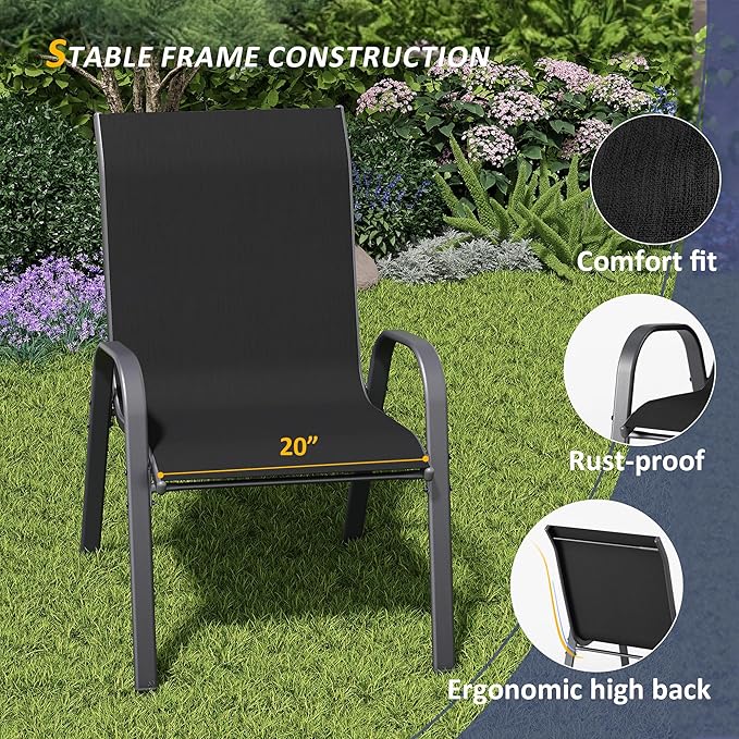 - 【STACKABLE CHAIRS】:This outdoor furniture set is not only soft and cosy, it's also stackable! 6 Patio Dining Chairs can be stacked when not in use, saving a lot of storage space.