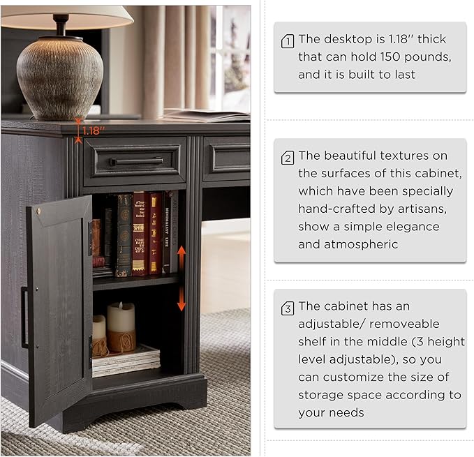 - Home Office Desk: Elevate your home office with this stylish and spacious Executive Desk, perfect for professionals and work-from-home individuals. Featuring an widen desktop and 5 drawers for organization, this Computer Desk is ideal for those in need of a functional and practical workspace solutio.