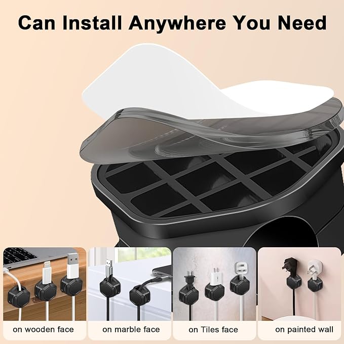 - EASY TO USE】Made of high quality material, permanent and durable, tear off the sticker on the back and stick it where you need it. Such as: desktop, side table, under table, kitchen, car, etc! Make your many cables more beautiful, organized and safe.