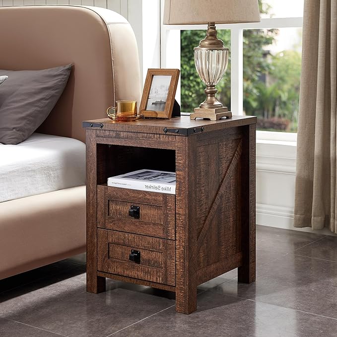 - Ample Storage Space: This chic farmhouse nightstand features a great fusion of farmhouse beauty and the utility of storage space. Overall size: 18" W x 18" D x 24" H. It comes with 2 drawers and an open shelf, provide you with ample storage space to store your daily item, keeping the room neat and organized.