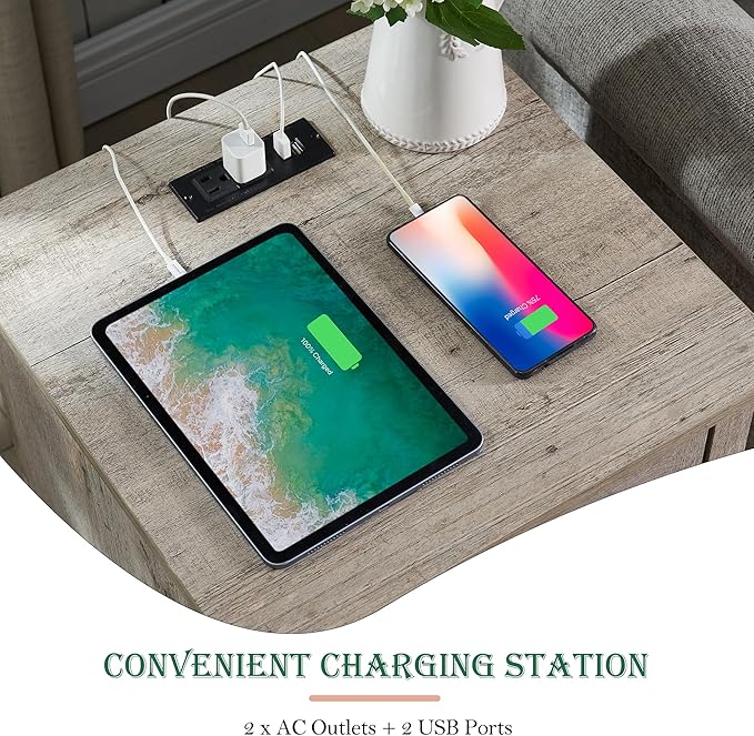 - Durable & Sturdy: This nightstand with charging station is made of durable engineered wood for long-term use, scratch resistant. No odor. The widened 2’’*2’’ table legs make the table not slide easily, and provide great durability and stability.