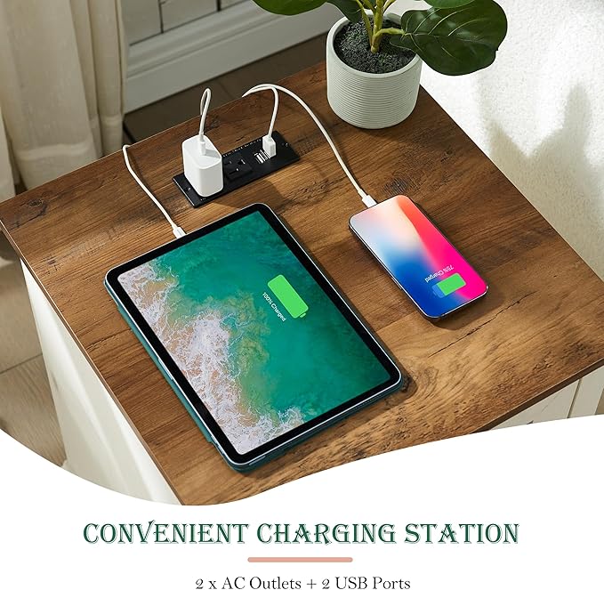 - Durable & Sturdy: This nightstand with charging station is made of durable engineered wood for long-term use, scratch resistant. No odor. The widened 2’’*2’’ table legs make the table not slide easily, and provide great durability and stability.