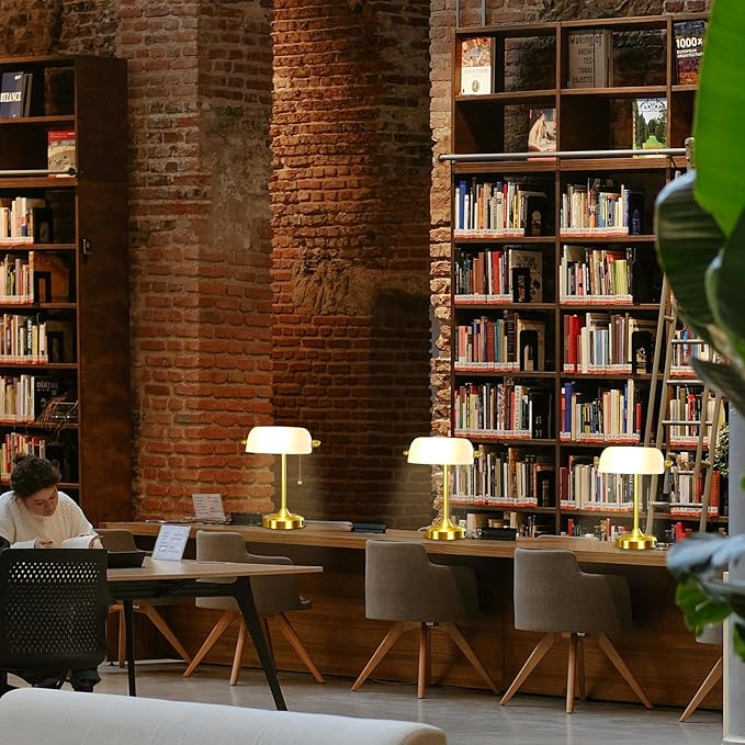- ๐๐จ๐ซ๐ ๐๐จ๐ฎ๐ฌ ๐๐ง๐ ๐๐จ๐ฌ๐ญ๐๐ฅ๐ ๐ข๐ - If you were looking for something vintage-looking, but not too large, our banker's lamp was a perfect fit. this banker's desk lamp with a white retro plastics lampshade and satin brass finish becomes to beautiful addition to your home office. Traditional on/off pull chain switch bringing a classic mid-century look to your interior furnishings