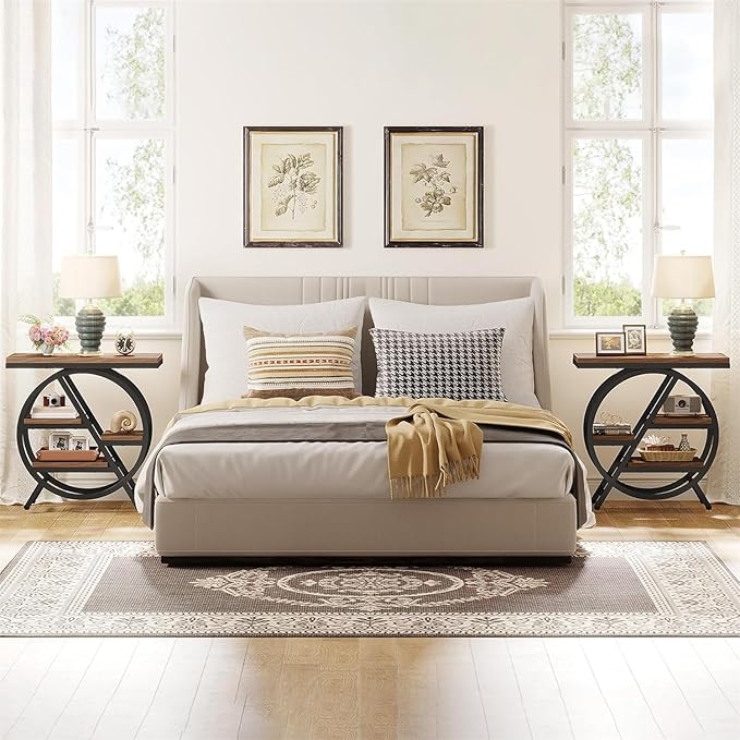 - 【Stable and Durable】 The rustic side table is robustly constructed with 0.59" E1 high-grade particle board shelves and a heavy-duty metal frame, able to support up to 30 lb. The retro veneer is water-resistant, scratch-resistant, and super easy to clean. 4 adjustable foot pads of this living room end table keep it more stable even on uneven floors and prevent scratches.