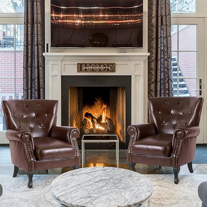 - STURDY CONSTRUCTION: Supported by strong, solid wood legs, this Club chair offers exceptional stability and can support up to 300 lbs. Thick metal sinuous springs provide cushion support, while the 35" high backrest with a wing design embraces your entire back for maximum comfort.