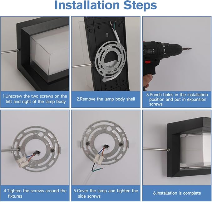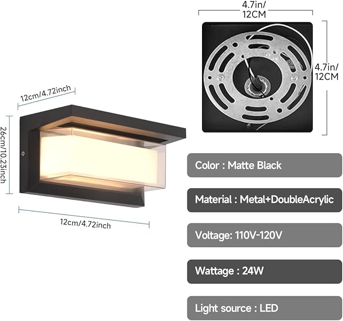 - Simple installation:led porch wall light with American mounting plate and screws can be easily installed within 20 minutes. (International standard wiring: Red-Live Wire, Blue-Neutral Wire, Yellow-Ground Wire).