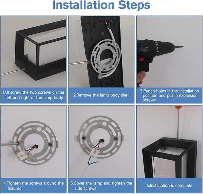 - Simple installation:led porch wall light with American mounting plate and screws can be easily installed within 20 minutes. (International standard wiring: Red-Live Wire, Blue-Neutral Wire, Yellow-Ground Wire).