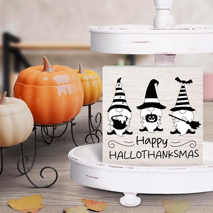 Vintage Gnome Wooden Box Sign Funny Desk Decor Halloween Decorations Witchcraft Supplies for Home Farmhouse Table Tiered Tray Wall Rustic Plaque Block Sign Decorative Thanksgiving Fall Christmas Decor