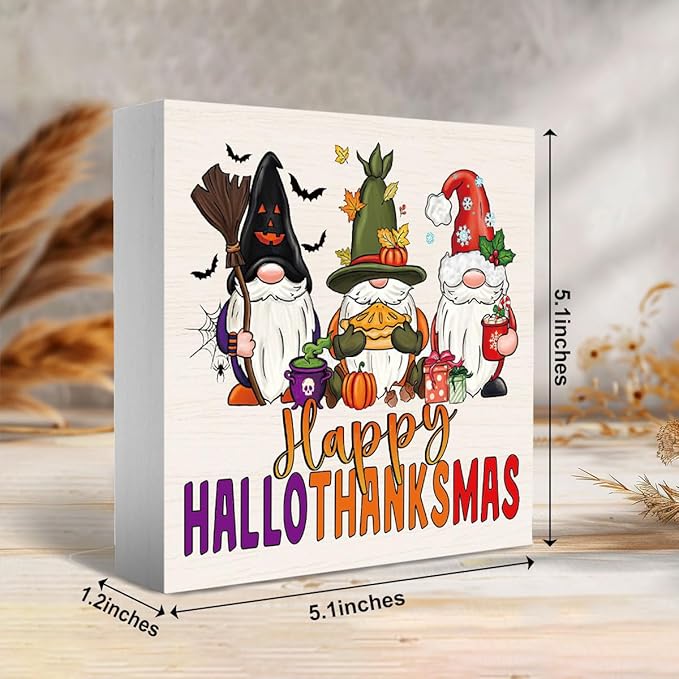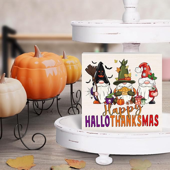 Vintage Gnome Wooden Box Sign Funny Desk Decor Halloween Decorations Fall Decor for Home Farmhouse Table Living Room Tiered Tray Wall Rustic Plaque Block Sign Decorative Thanksgiving Christmas Decor