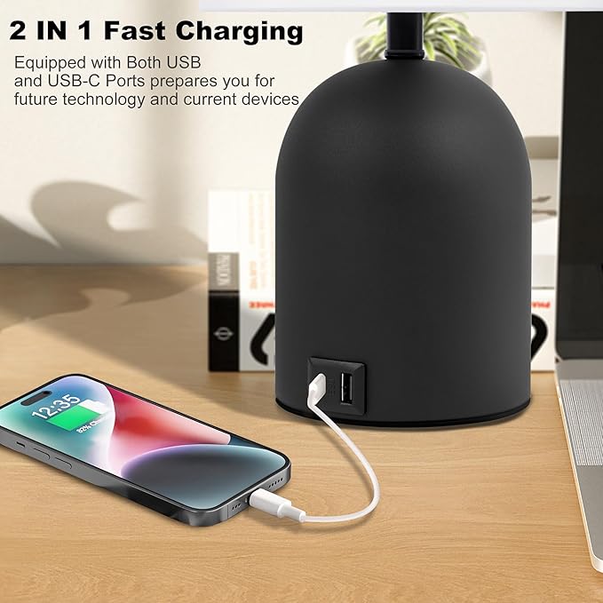 - Charge Multiple Devices: Desk lamp with USB-A and USB-C charging ports, this lamp lets you easily charge two devices simultaneously, keeping your workspace neat and your devices powered