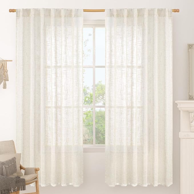 LAMIT 72 inch Length Cream Linen Curtains for Living Room 2 Panels, Linen Textured Light Filtering Semi Sheer Back Tab and Rod Pocket Window Curtain Panels for Bedroom/Farmhouse, 52 x 72 Inch