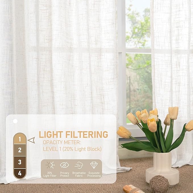 - Airy & Breathable: The linen curtains' weave blend density provides beautiful diffused light while reducing energy usage and providing 20% privacy protection with only hazy shadows visible from indoors, creating a safe and comfortable space.