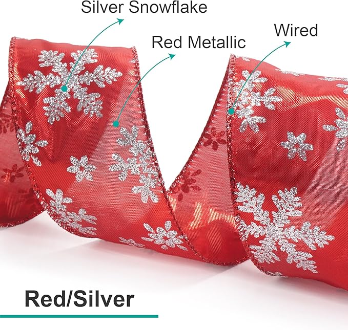 - A MUST-HAVE FOR DECORATION - Don't miss it if you're choosing a red Metallic with Silver Glitter Snowflake Wired Ribbon 2.5" for your decoration! Our ribbon works perfectly for decorating and adding finishing touch to your craft projects. Simple and elegant.