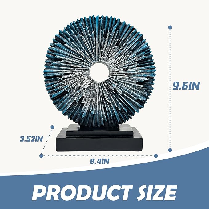Abstract Statue for Home Decor,Office Desk Sculpture for Men,Creative Round Line Ornament for Bookshelf,Modern Decorative Sculpture,Bedroom,Livngroom,Table(Blue)