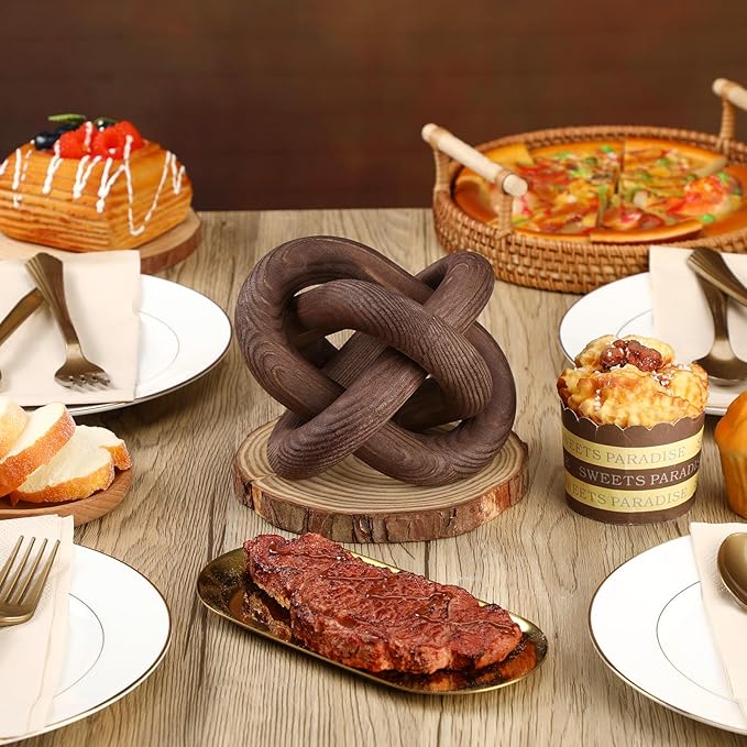 3 Link Wood Knot Decor - Hand Carved Coffee Table Decoration, Boho Chain Link Decor, Modern Shelf, Rustic Objects for Home Living Room Bedroom(Black Walnut)
