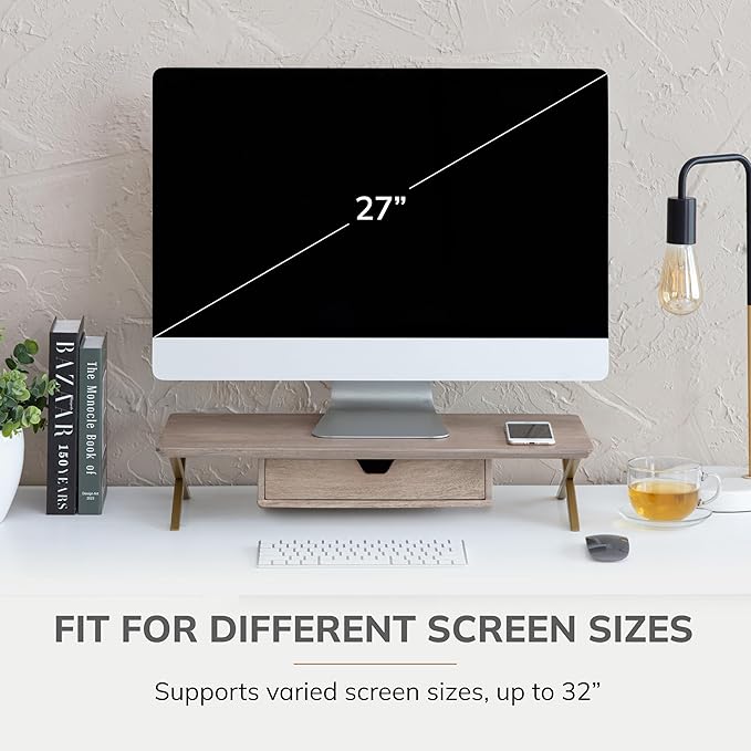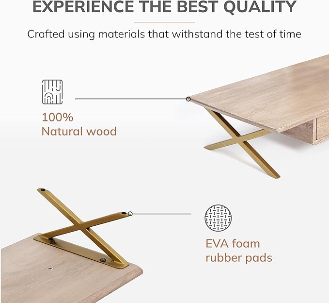 - Ergonomic Computer Riser: Prioritize comfort with this thoughtfully designed computer riser. As one of the best computer risers for desk monitors, the monitor stand wood construction offers an ideal viewing angle for maximum productivity.