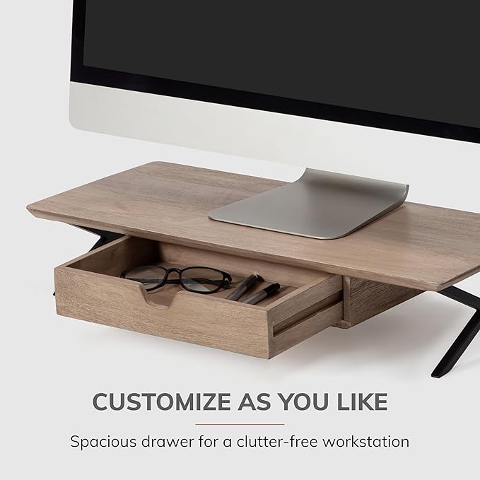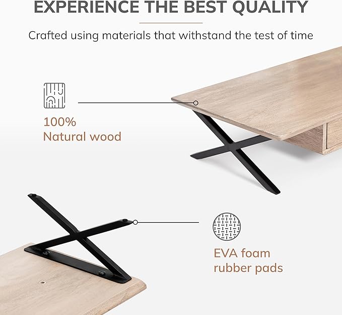 • Ergonomic Computer Riser: Prioritize comfort with this thoughtfully designed computer riser. As one of the best computer risers for desk monitors, the monitor stand wood construction offers an ideal viewing angle for maximum productivity.