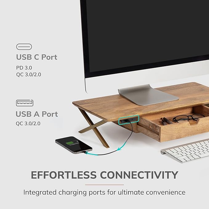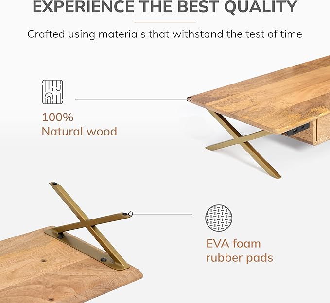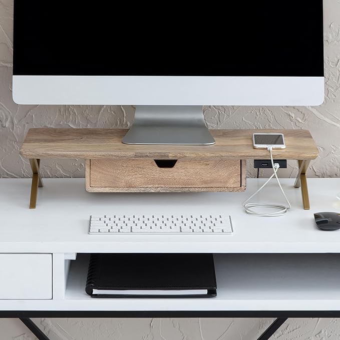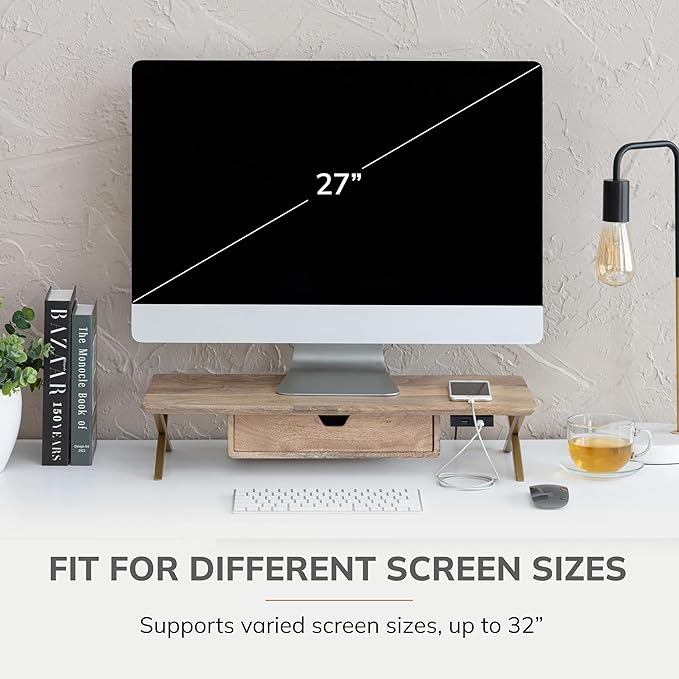- Ergonomic Computer Riser: Prioritize comfort with this thoughtfully designed computer riser. As one of the best computer risers for desk monitors, the monitor stand wood construction offers an ideal viewing angle for maximum productivity.