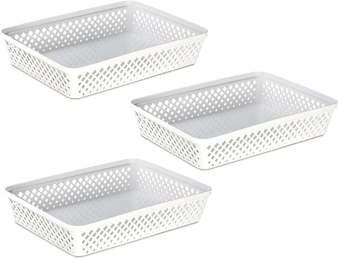 - BULK STORAGE SET - Package contains 3 open storage bins to easily keep supplies organized and separated. Create your own divided storage system by using multiple plastic baskets together.