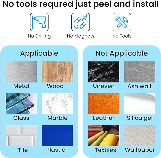 - Fast, easy installation: clean the surface,peel the backing off, Press the strip harder. The harder you press, the firmer the glue strip. remove without any residues, NO damage, NO drilling.
