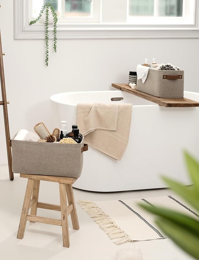 - Premium Materials: The storage basket is crafted from durable, thick fabric and features wide PU leather handles with rivet reinforcement, ensuring both strength and ease of movement to any desired location.