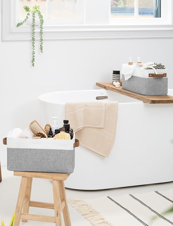 - Premium Materials: The storage basket is crafted from durable, thick fabric and features wide PU leather handles with rivet reinforcement, ensuring both strength and ease of movement to any desired location.