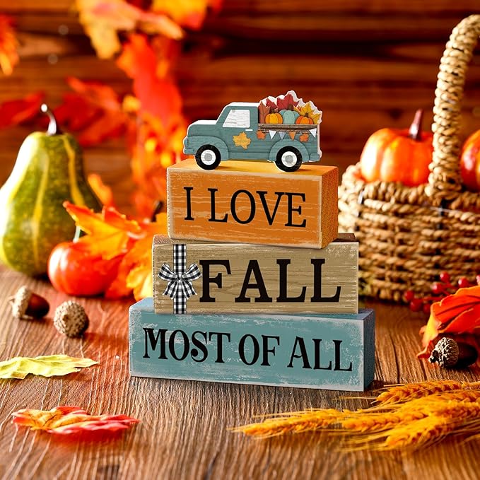 - Fall Tiered Tray Decorations: come with 4 wooden signs, 1 truck sign and 3 wood block sign; Vibrant fall centerpieces are suitable for fall parties and home to welcome the fall harvest season