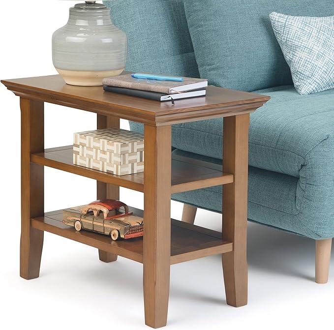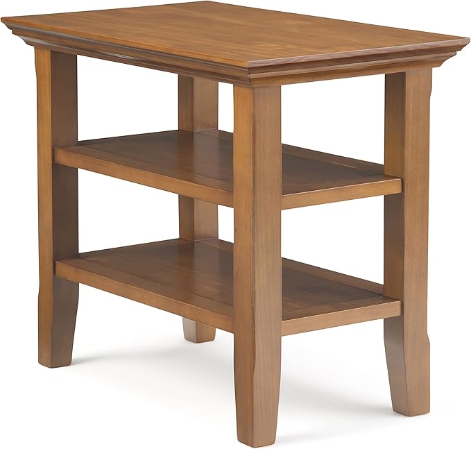SIMPLIHOME 14" Solid Wood Narrow Side Tables with Storage - 1 Drawer & Shelf in Light Golden Brown and 2 Shelves in Light Golden Brown