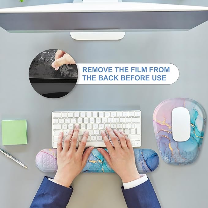 - 【Mouse Pad with Wrist Rest】 The surface is made of silky and superfine Lycra fabric, which is skin-friendly, mouse-friendly, and breathable. Crafted with 100% memory foam, this set provides long-lasting support that won't deform over time like gel alternatives. It ensures the accuracy and consistency of the mouse and is suitable for all types of wired and wireless mice.