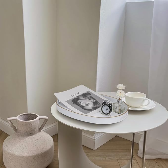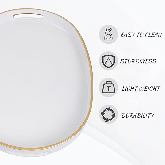 - ELEGANT DESIGN: With a simple solid color finish and golden top rims, the serving tray decorative has a modern and elegant look to create an eye-catching display effect for your items. This chic white decorative tray can add a touch of color to your room and become a great addition to your home.