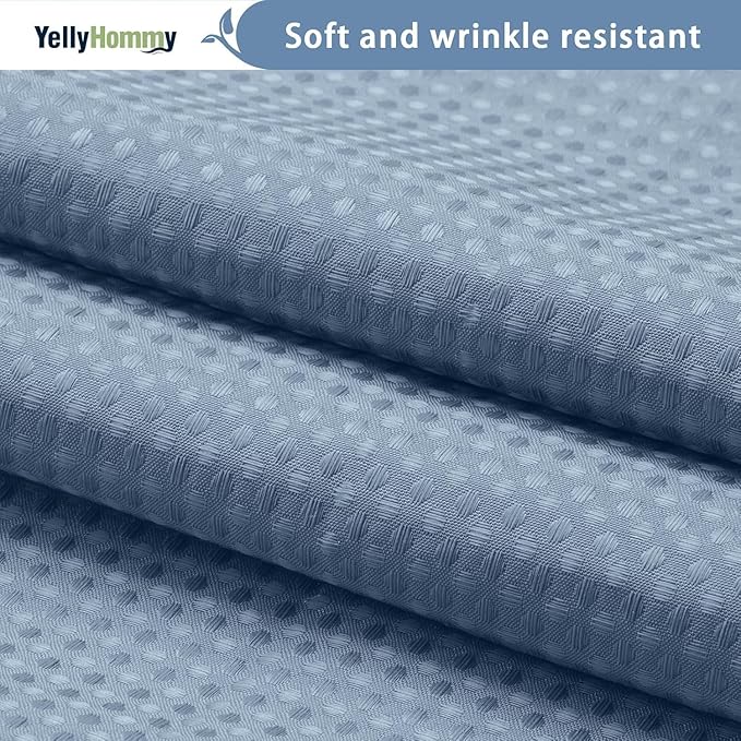 YellyHommy No Hook Shower Curtain with Snap in Liner Set Less Waffle Shower Curtain for Bathroom (Sky Blue, 81" L x 72" W)