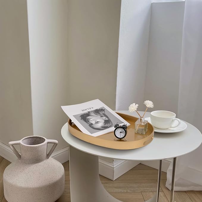 - OVAL TRAY WITH HANDLES: The decorative coffee table tray is equipped with two built-in hollow handles and elegant sides, which canprevent items from falling, also easily carry the oval decorative tray wherever you need it. The surface of the tray is smooth and easy to wipe with a damp cloth or rinse with warm water.